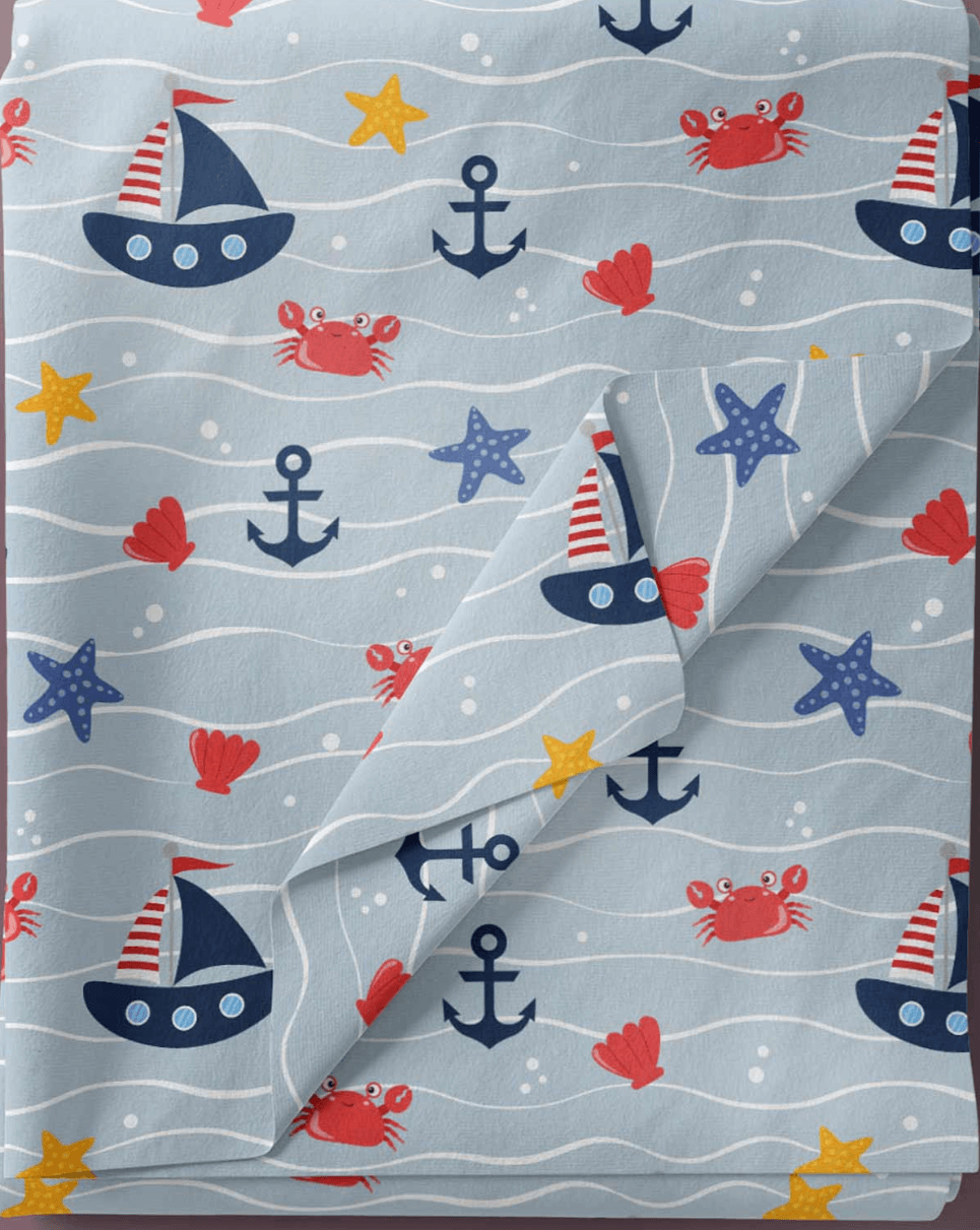 SKF15445 – Boat and Crab Star Fish Fabric Print